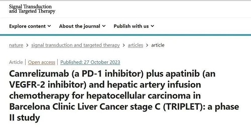 [1] Zhang, TQ., Geng, ZJ., Zuo, MX. et al. Camrelizumab (a PD-1 inhibitor) plus apatinib (an VEGFR-2 inhibitor) and hepatic artery infusion chemotherapy for hepatocellular carcinoma in Barcelona Clinic Liver Cancer stage C (TRIPLET): a phase II study. Sig Transduct Target Ther 8, 413 (2023). http://doi.org/10.1038/s41392-023-01663-6